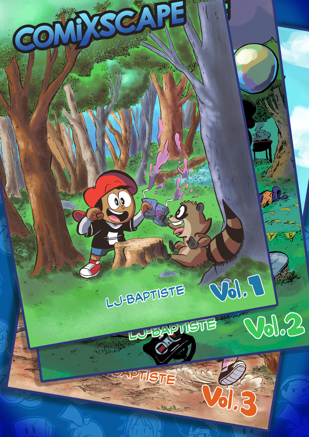 Jump into the world of perpetual pre-teen Tyler Welsey and his raccoon sidekick Rocky in this special book bundle of their adventures, spanning Volumes 1-3 and the first 4 chapters of the series!! This bundle is the #1 way to complete your COMIXSCAPE collection and stay caught up on the exploits of Tyler, Nia, Rocky, Mason, and the rest of the crew before Volume 4's release!